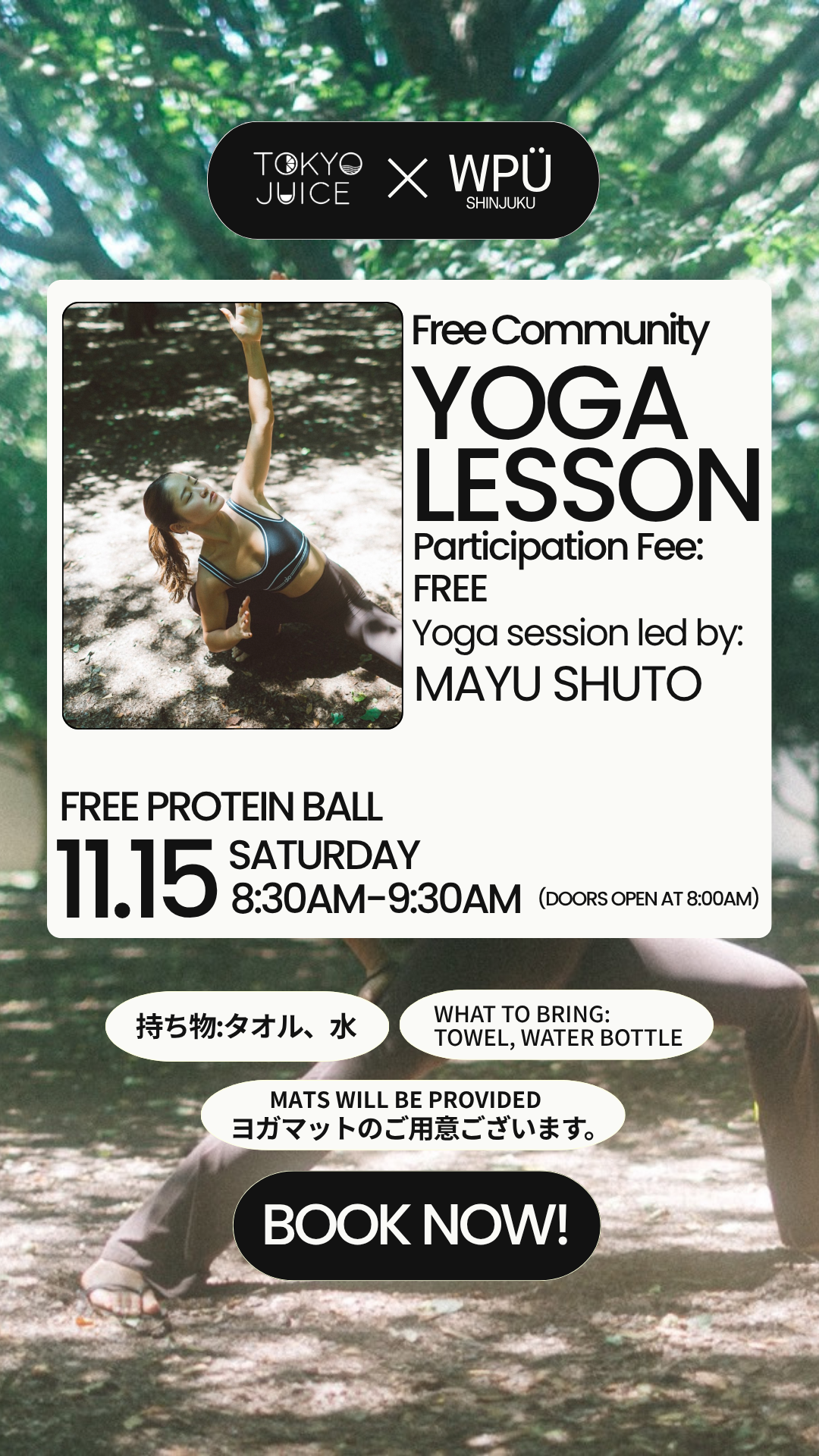 Community Yoga Event | Saturday, November 15 | TOKYO JUICE × WPÜ Shinjuku
