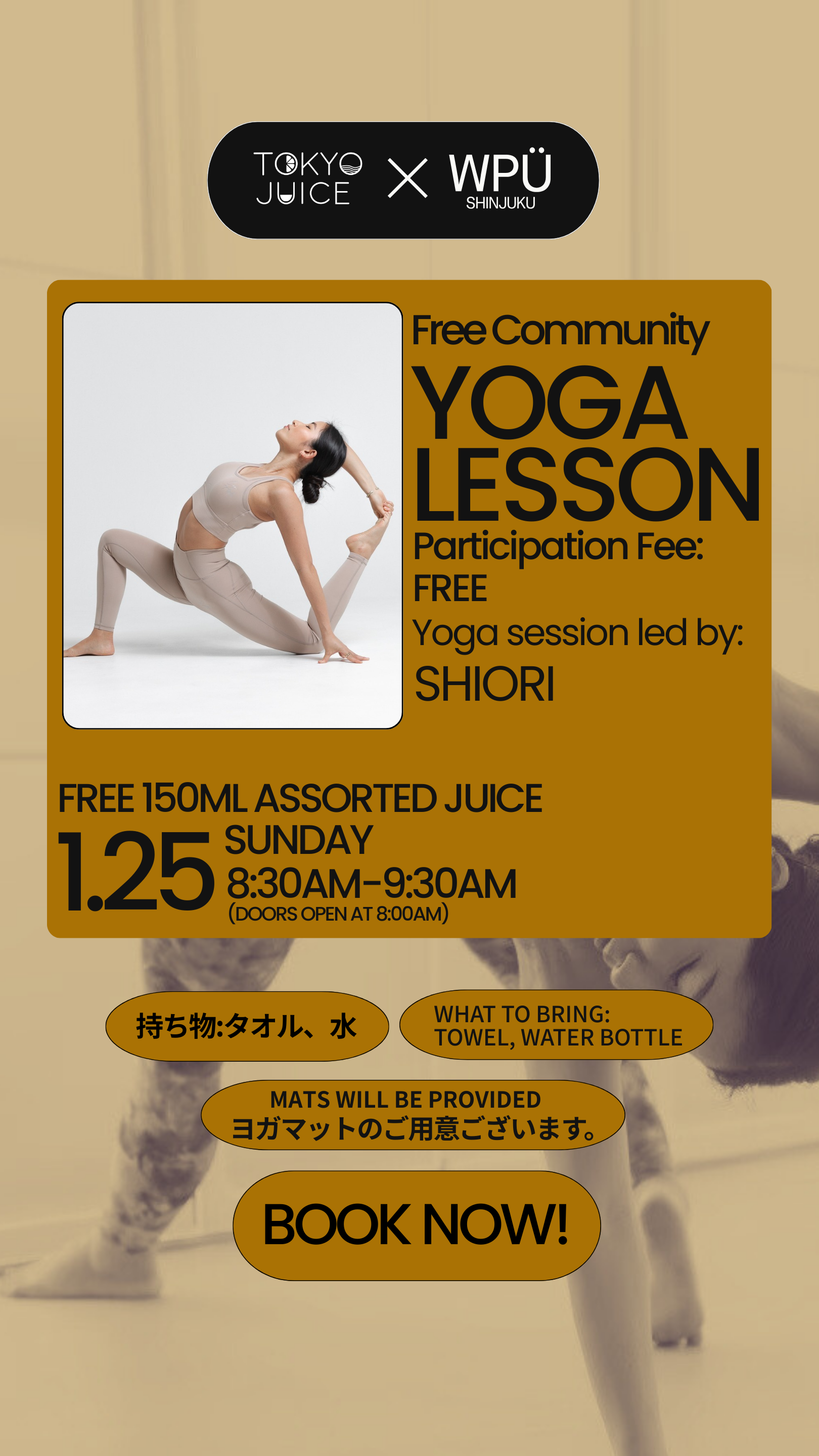 Community Yoga Class | Sunday, January 25th | Shiori Akiyama x TOKYO JUICE