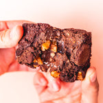 Ingredients: chia seeds, chocolate chips, coconut butter, coconut oil, molasses, vanilla, mochi rice flour, cacao powder, cinnamon ,salt, walnuts