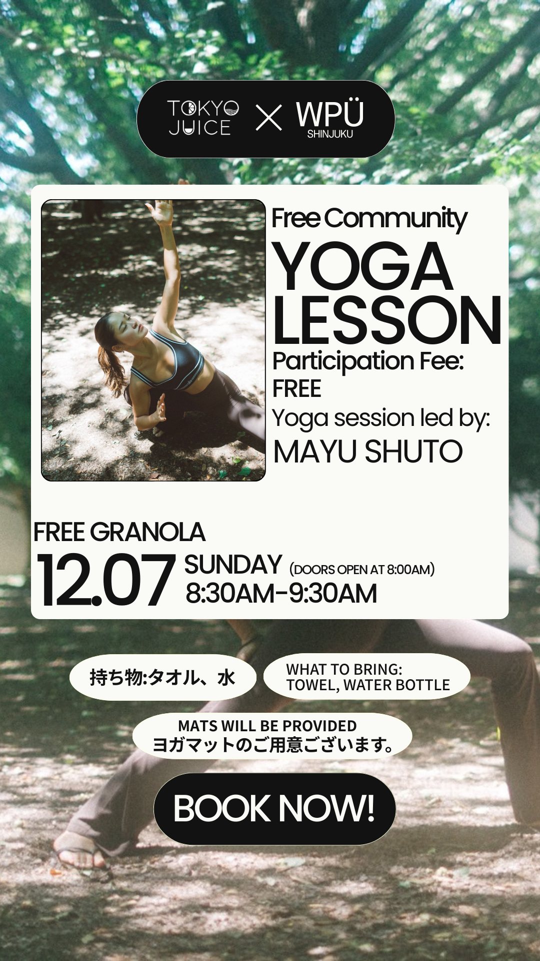 コミュニティヨガクラス 12/7(日) - TOKYO JUICE × WPÜ Shinjuku コラボ