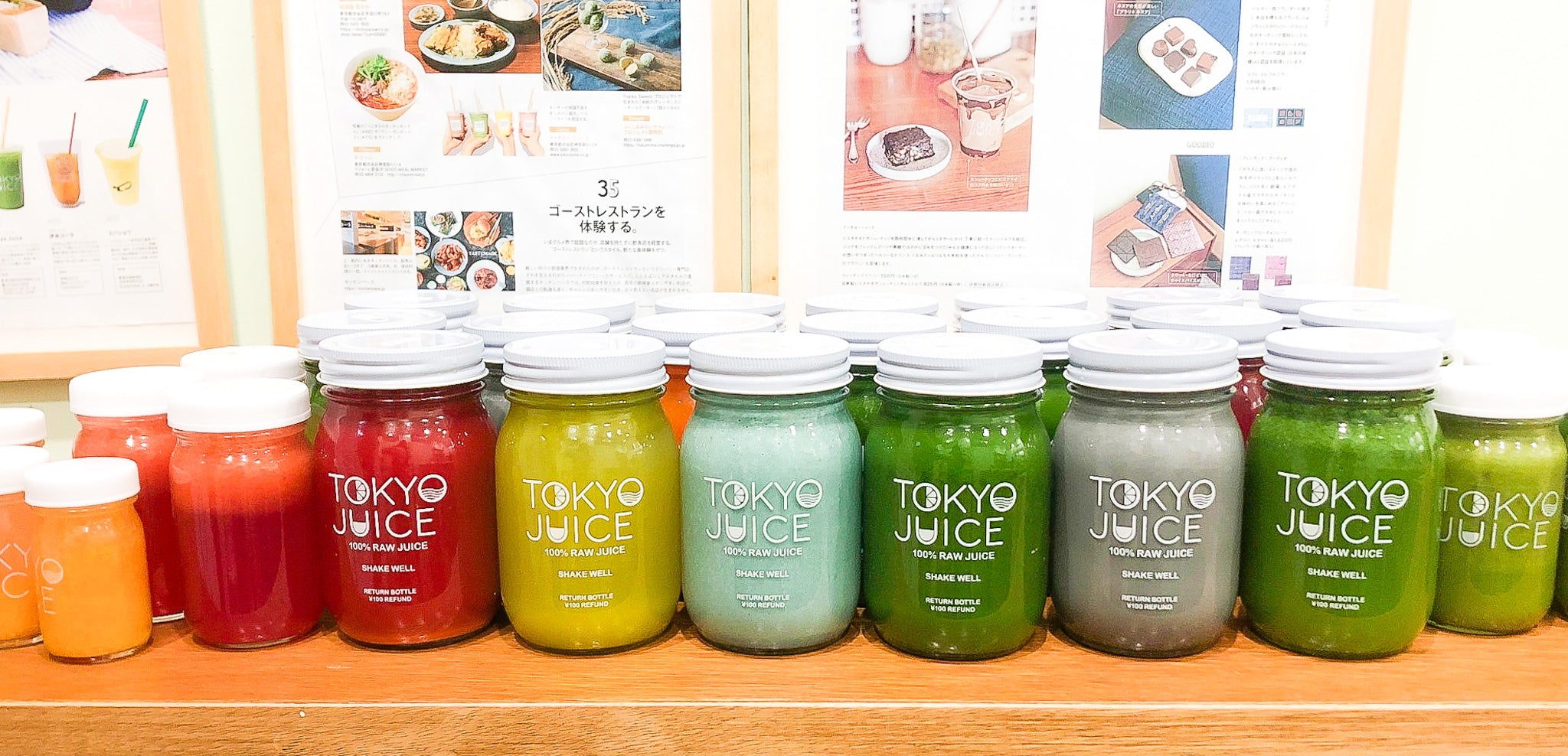 米国保険協会は1日あたり最低350g(できれば500gが望ましい)の野菜の消費を推奨しています。ほうれん草1袋は約150g。つまり毎日350g(500gは言うまでもなく)の野菜を摂取するのは容易ではありません。 よってジュースにする必要性がここにあります! 果物と野菜を絞ってジュースにすることで栄養素を抽出し、350g~500gの量を手軽に摂取することが出来るのです。、Tokyo Juiceは皆様の毎日の必要摂取量を満たすサポートを行っています。 当店の新鮮なジュース一杯には約1kgもの野菜や果物が使われており、皆様の一日に必要な摂取量を満たすサポートをいたします。